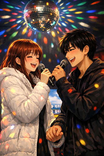 - 미러볼 불빛 속 연인들의 애틋한 눈맞춤