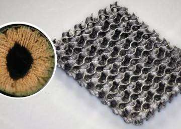 스위스 로잔 연방 공과대학교(EPFL) 연구진이 스펀지처럼 말랑한 하이드로젤을 이용해 기존보다 20배나 강한 압력을 견디는 금속 부품을 만드는 3D 프린팅 신기술을 개발했다. 사진은 구리 함유 하이드로겔과 대형 철제 자이로이드의 단면. 사진=스위스 로잔공과대학(EPFL)