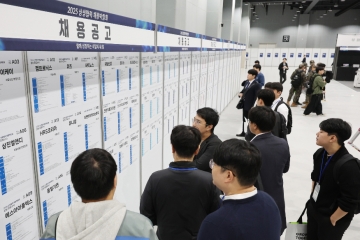 2025년 10월 21일 서울 강서구 코엑스 마곡에서 열린 '2025 상생협력 채용박람회'를 찾은 구직자들이 채용공고를 살펴보고 있다. 사진=연합뉴스