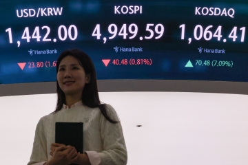 한국거래소에 따르면 이날 코스피는 전장 대비 40.48포인트(0.81%) 내린 4,949.59로 거래를 마감했다. 지수는 4,997.54로 출발해 오전 9시 16분 사상 최고치인 5,023.76까지 올랐으나 상승분을 반납했다.