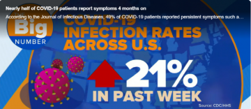 이는 비코로나19 환자의 피로 발생률보다 훨씬 높은 수치이며, 코로나19 양성 반응을 보인 환자는 추적 관찰 기간 동안 만성 피로가 발생할 확률이 4.3배 더 높았다.