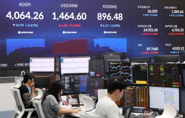 한국은행이 1일 공개한 '2025년 3분기 말 외화증권 투자 동향'에 따르면, 올해 3분기 국내 기관투자가들의 해외 외화증권 투자 규모가 약 250억달러 늘어난 것으로 집계됐다. 사진은 2025년 11월 18일 오전 서울 중구 우리은행 본점 딜링룸 현황판에 코스피 지수 등이 표시돼 있다. 사진=연합뉴스