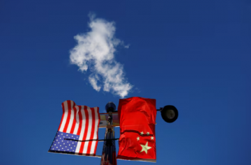 도널드 트럼프 미국 대통령이 중국산 희토류와 핵심 광물에 대한 의존도를 낮추기 위해 120억달러 규모의 전략적 광물 비축 사업을 추진할 계획이다. 사진은 미국 매사추세츠주 보스톤시내 가로등에 게양된 미국과 중국 국기=로이터/연합뉴스